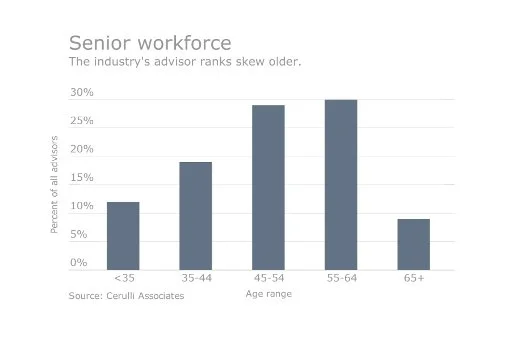 In my line of work, I can’t help but think about what this means for advisors exiting the business. In simple math, a shortage of successors has a few potential implications: